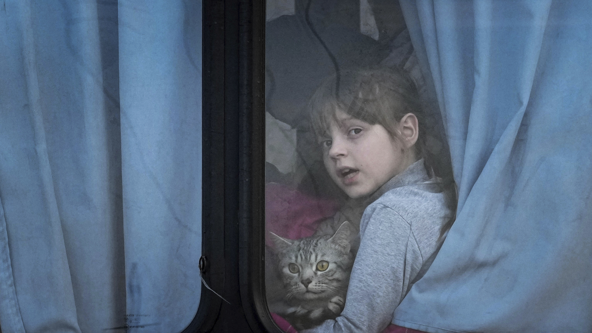 Ein Kind wartet in einem Bus in Saporischschja.
